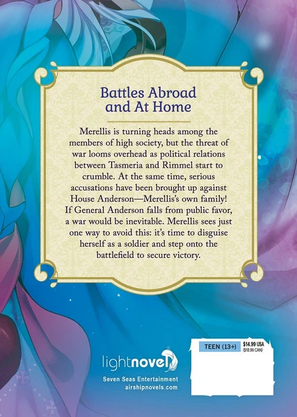 Merellis is turning heads among the members of high society, but the threat of war looms overhead as political relations between Tasmeria and Rimmel start to crumble. At the same time, serious accusations have been brought up against House Anderson—Merellis’s own family! If General Anderson falls from public favor, a war would be inevitable. Merellis sees just one way to avoid this: it’s time to disguise herself as a soldier and step onto the battlefield to secure victory.