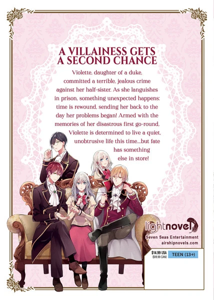 Violette, daughter of a duke, committed a terrible, jealous crime against her half-sister. As she languishes in prison, something unexpected happens: time is rewound, sending her back to the day her problems began! Armed with the memories of her disastrous first go-round, Violette is determined to live a quiet, unobtrusive life this time…but fate has something else in store!