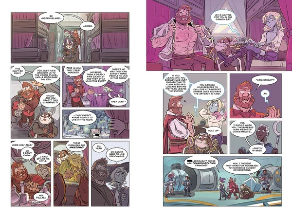 In the second Adventure Zone graphic novel (adapted from the McElroy family’s wildly popular D&D podcast), we rejoin hero-adjacent sort-of-comrades-in-arms Taako, Magnus, and Merle on a wild careen through a D&D railroad murder mystery. This installment has a little of everything: a genius child detective, an axe-wielding professional wrestler, a surly wizard, cursed magical artifacts, and a pair of meat monsters.