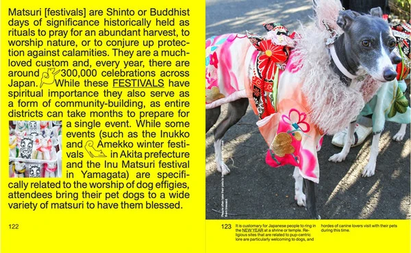 In Japan’s Best Friend, stunning photographs take readers to religious festivals and shrines that honor dog deities, to the streets of Tokyo where canines are a mainstay of kawaii culture, and inside the doors of cafés that make pup-themed latte art as well as facilities that train rescue dogs to be involved with therapy.