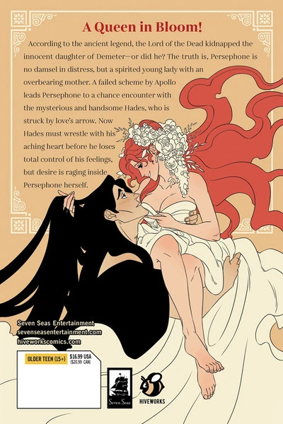 According to the ancient legend, the Lord of the Dead kidnapped the innocent daughter of Demeter—or did he? The truth is, Persephone is no damsel in distress, but a spirited young lady with an overbearing mother. A failed scheme by Apollo leads Persephone to a chance encounter with the mysterious and handsome Hades, who is struck by love’s arrow. Now Hades must wrestle with his aching heart before he loses total control of his feelings, but desire is raging inside Persepone herself.