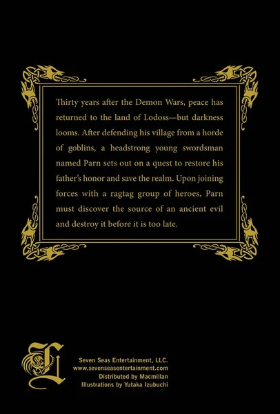 Thirty years after the Demon Wars, peace has returned to the land of Lodoss–but darkness looms. After defending his village against a horde of goblins, a headstrong young warrior named Parn sets out on a quest to restore his father’s honor and save the realm. Joining Parn are Deedlit the high elf, Slayn the wizard, Etoh, a fledgling priest, Ghim, a grizzled dwarven warrior, and Woodchuck, a wily thief. Along their journey, Parn and his companions discover an evil witch who, for eons, has been manipulating events from the shadows. Can this ragtag party of heroes defeat the all-powerful Grey Witch and prevent Lodoss and its kingdoms from descending into total chaos and destruction?
