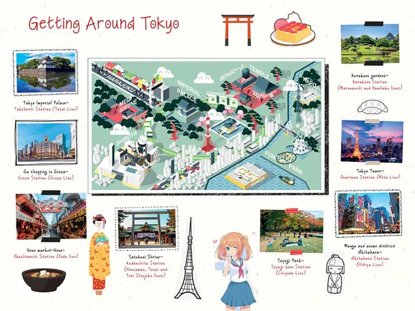 - pages 1-16: Travel information including subway maps & must-see destinations, such as: Tokyo, Harajuku and Meiji Shrine, Kyoto’s Top Temples, Himeji Castle, and many more!