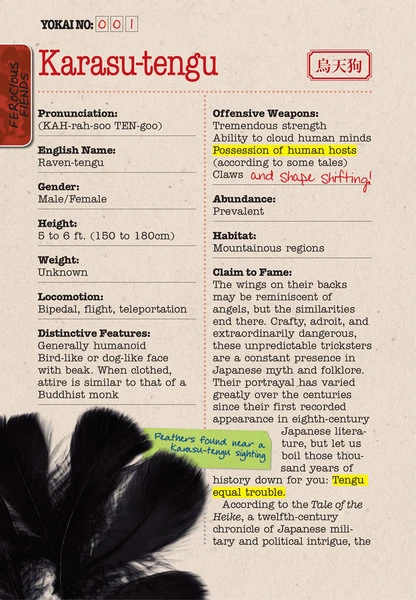 Illustrations, created by the talented Tatsuya Morino, detail the potential appearance of each yokai. Alongside each illustration is a series of “data points,” with each yokai’s significant features at a glance–especially handy for any potential close encounters.